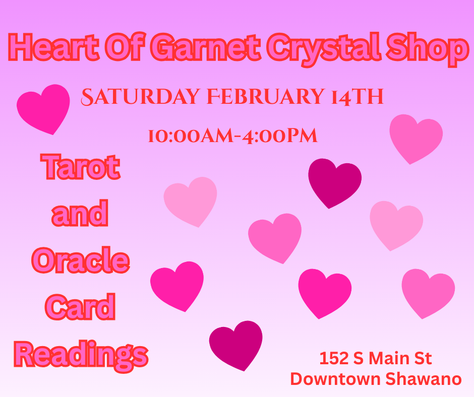 I will be reading Tarot & Oracle cards at Heart Of Garnet Crystal Shop! Please stop in, bring a friend & shop! Natasha has amazing crystals! Natasha is a sweetheart & her crystals are absolutely beautiful with excellent energies!